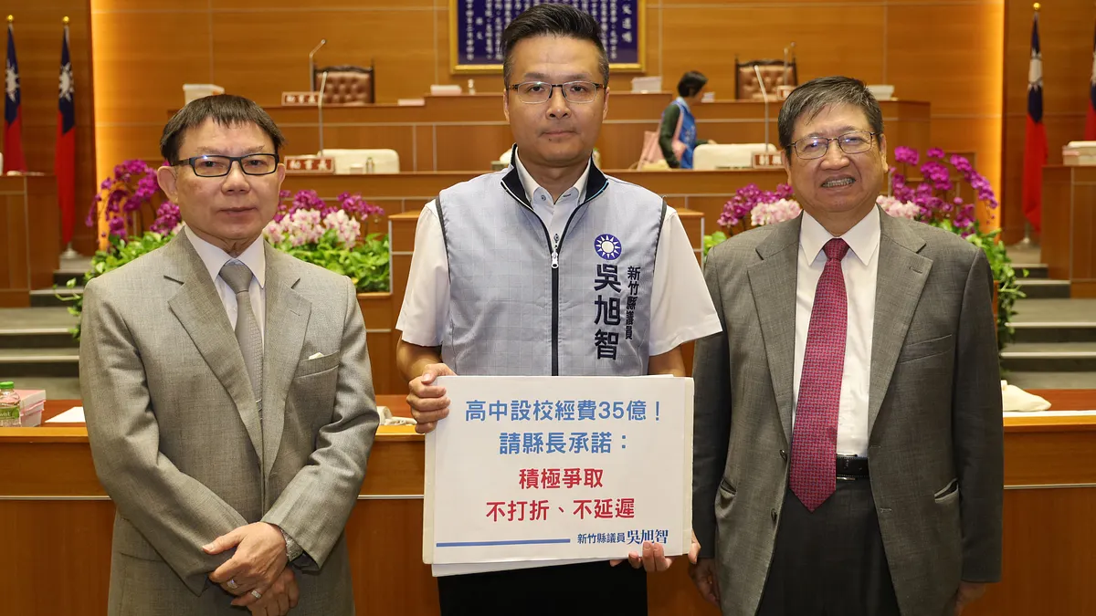 新竹縣議會今(28)日進行第20屆第5次定期會縣政總質詢,吳旭智議員針對中央預算短撥,恐影響教育,尤其是新竹高中五大方案建設,他要求設校經費不論中央是否補助,縣府要全力以赴;中央統刪預算不能成為縣府刪減社福教育醫療的藉口;縣府要主動表態、爭取、溝通。縣長楊文科答詢時明確回覆,孩子受教權不能受影響,高中五大方案持續進行,絕不能跳票!